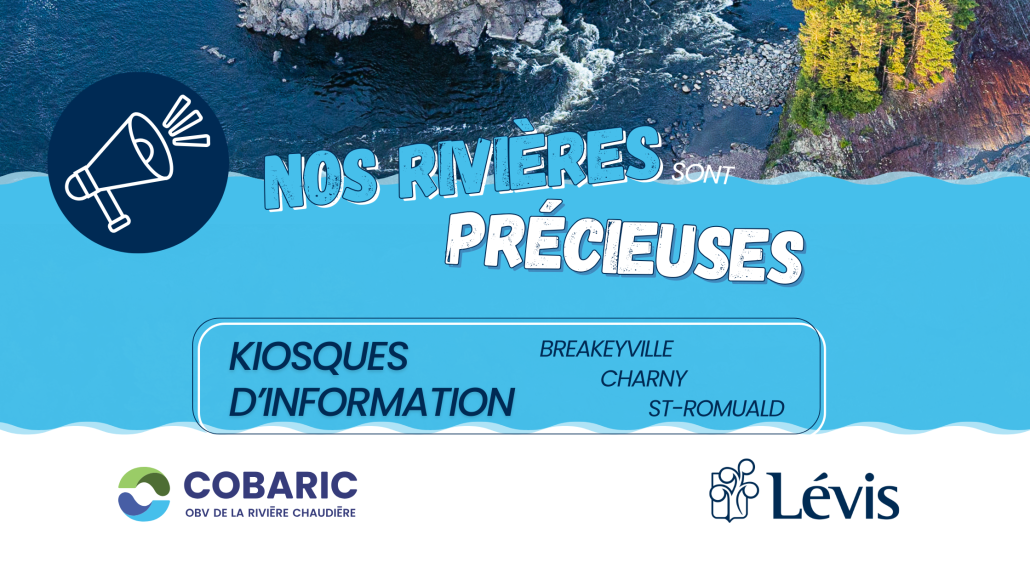 Dans le cadre de ce projet destiné aux résidents de la plus grande ville de Chaudière-Appalaches, des kiosques d’information seront tenus dans des parcs riverains des quartiers de Charny, Sainte-Hélène-de-Breakeyville et Saint-Romuald. Ces rendez-vous gratuits permettront aux citoyennes et citoyens d’en apprendre plus sur l’impact de la vie en ville sur les rivières, de déconstruire des idées-reçues et d’explorer des gestes simples pour préserver l’eau.