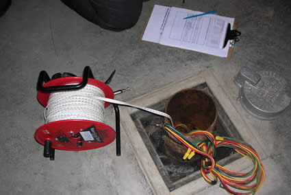Prise d’une mesure de niveau d’eau dans un puits privé (piézométrie), COBARIC